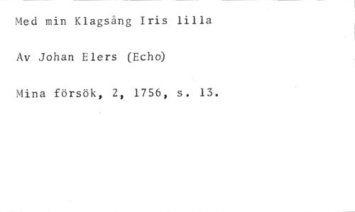 Med min Klagsång Iris lilla Av Johan Elers (Echo) //// Mina försök, 2, 1756, s. 13.