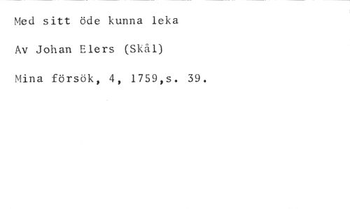 Med sitt öde kunna leka Av Johan Elers (Skål) //// Mina försök, 4, 1759,s. 39.