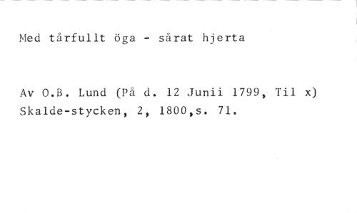 Med tärfullt öga - sårat hierta //// Av O.B. Lund (På d. 12 Junii 1799, Til x) Skalde-stycken, 2, 1800,s. 71.
