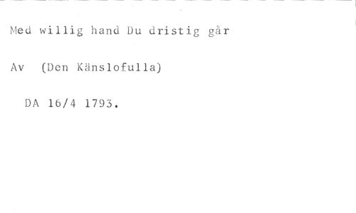 Med Ovillig hand Du dristig går //// Av (Den Känslofulla) //// DA 16/4 1793.