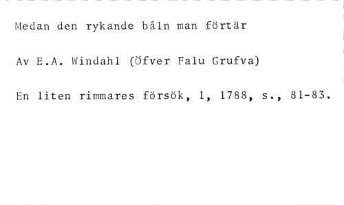 Medan den rykande båln man förtär Av E.A. Windahl Ofver Falu Grufva) //// En liten rimmares försök, 1, 1788, s., 81-83.