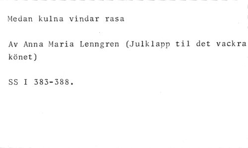 Medan kulna vindar rasa //// Av Anna Maria Lenngren (Julklapp til det vackra könet) //// SS I 383-388.
