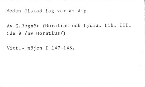 Medan älskad jag var af dig //// Av G.Regner (Horatius och Lydia. Lib. III. Ode 9 /av Horatiusn //// Vitt.- nöjen 147-148.