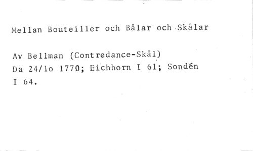 Mellan Bouteiller och Bålar och Skålar //// Av Bellman (Contredance-Skål) //// Da 24/lo 1770; Eichhorn I 6f; Sonden I 64.