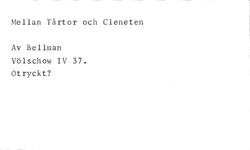 Mellan Tårtor och Cleneten //// Av Bellman //// Völschow IV 37. Otryckt?