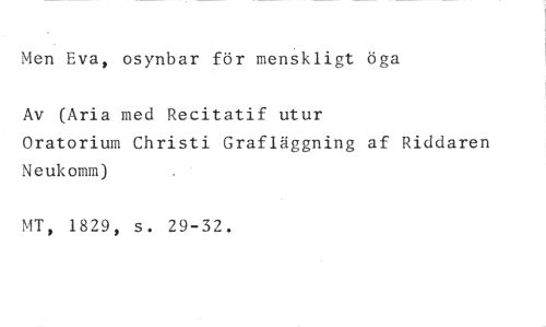 Men Eva, osynbar för menåkligt öga //// Av (Aria med Recitatif utur //// Oratorium Christi Grafläggning af Riddaren Neukomm) //// MT, 1829, s. 29-32.