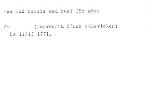 Men Gud bewars med hwad för möda //// Av (Impromptu öfwer Wäderleken) //// DA 11/12 1771.