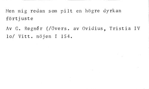 Men mig redan som pilt en högre dyrkan förtjuste //// Av G. Regnar (/Övers. av Ovidius, Tristia IV lo/ Vitt. nöjen I 154.