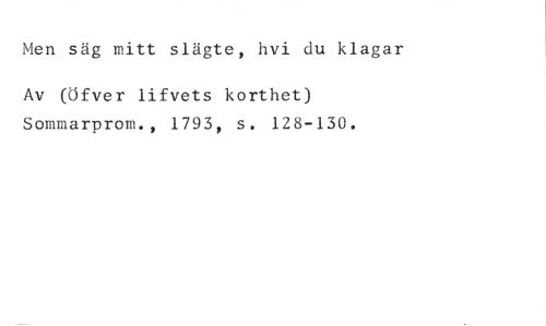 Men säg mitt slägte, hvi du klagar //// Av (öfver lifvets korthet) Sommarprom., 1793, s. 128-130.