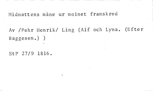 Midnattens måne ur molnet framskred //// Av /Pehr Henrik/ Ling (Alf och Lyna. (Efter Baggesen.) ) //// StP 27/9 1816.
