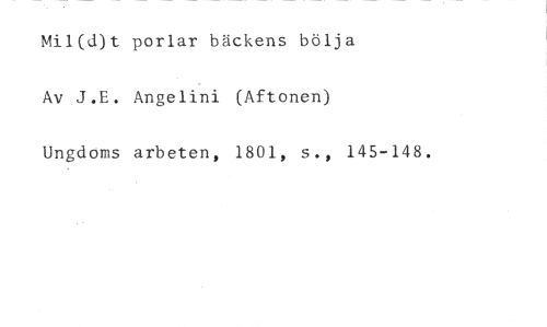 Mil(d)t porlar bäckens bölja //// Av J.E. Angelini (Aftonen) //// Ungdoms arbeten, 1801, s ., 145-148.