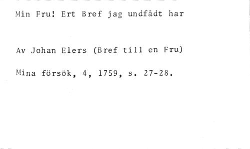 Min Fru! Ert Bref jag undfådt har //// Av Johan Elers (Bref till en Fru) //// Mina försök, 4, 1759, s. 27-28.