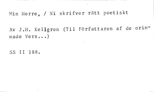 Min Herre, / Ni skrifver rätt poetiskt //// Av J.H. Kellgren (Til Författaren af de °rimmade Vers...) //// SS II 188.