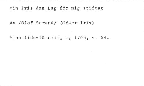 Min Iris den Lag för mig stiftat Av /Olof Strand/ (öfwer Iris) //// Mina tids-fördrif, 1, 1763, s. 54.