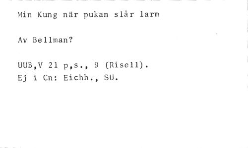 Min Kung när pukan slår larm Av Bellman? //// UUB,V 21 p,s., 9 (Risell). Ej i Cn: Eichh., SU.