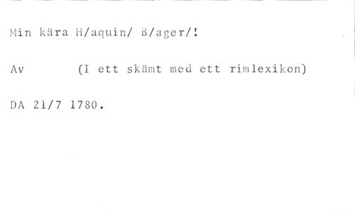 Min kära H/aquin/ Biager/: //// Av (I ett skämt med ett rimlexikon) //// DA 21/7 1780.