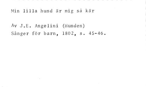 Min lilla hund är mig så kär //// Av J.E. Angelini (Hunden) //// Sånger för barn, 1802, s. 45-46.