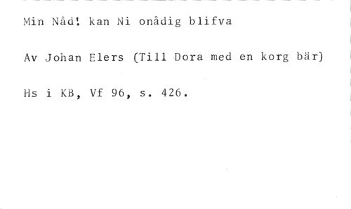 Min Nåd: kan Ni onådig blifva //// Av Johan Elers (Till Dora med en korg bär) Hs i KB, Vf 96, s. 426.