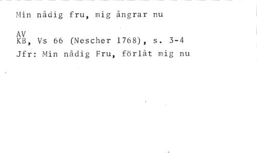 Min nådig fru, mig ångrar nu //// AV //// KB, Vs 66 (Nescher 1768), s. 3-4 //// Jfr: Min nådig Fru, förlåt mig nu