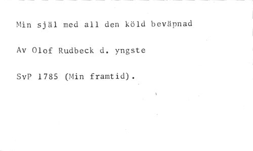 Min själ med all den köld beväpnad Av Olof Rudbeck d. yngste SvP 1785 (Min framtid).