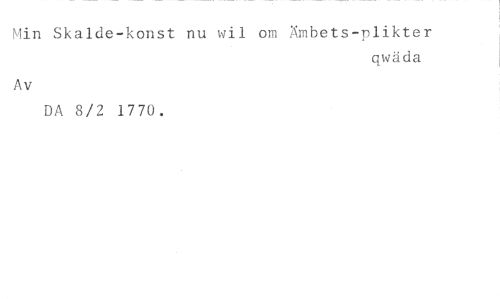 Min Skalde-konst nu wil om Ämbets-plikter //// qwäda //// Av //// DA 8/2 1770.