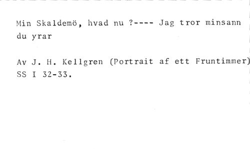 Min Skaldemö, hvad nu ?---- Jag tror minsann du yrar //// Av J. H. Kellgren (Portrait af ett Fruntimmer) SS I 32-33.