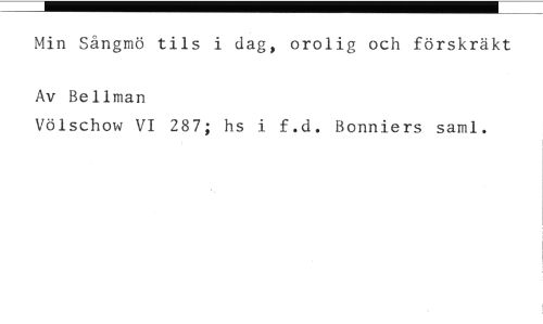 Min Sångmö tils i dag, orolig och förskräkt //// Av Bellman //// Völschow VI 287; hs i f.d. Bonniers saml.