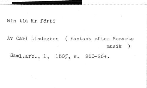 Min tid är förbi //// Av Carl Lindegren ( Fantask efter Mozarts //// musik ) //// Saml.arb., 1, 1805, s. 260-264.
