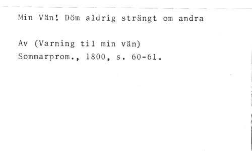 Min Vän! Döm aldrig strängt om andra //// Av (Varning til min vän) Sommarprom., 1800, s. 60-61.