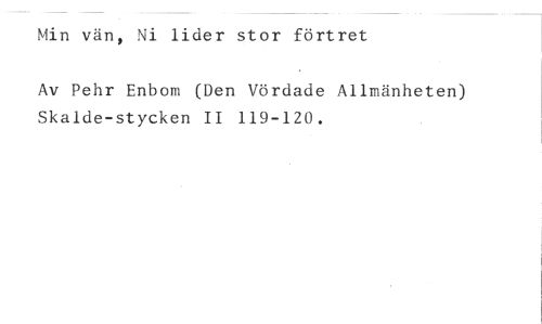 Min vän, Ni lider stor förtret //// Av Pehr Enbom (Den Vördade Allmänheten) Skalde-stycken II 119-120.