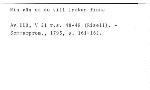 Min vän om du vill lyckan finna //// Av UUB, V 21 r.s. 48-49 (Risoll). - Sommarprom., 1793, s. 161-162.