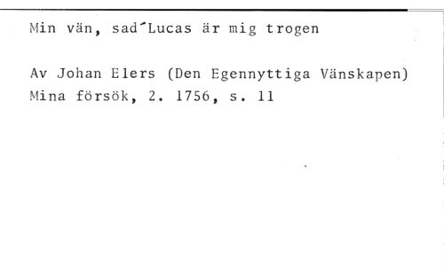 Min vän, sad-Lucas är mig trogen //// Av Johan Elers (Den Egennyttiga Vänskapen) Mina försök, 2. 1756, s. 11