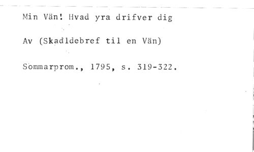 Min Vänt Hvad yra drifver dig Av (Skadldebref til en Vän) //// Sommarn rom., 1795, s. 319-322.