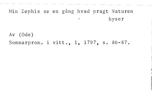 Min Zephis se en gång kvad pragt Naturen //// hyser //// Av (Ode) //// Sommarprom. i vitt., 1, 1797, s. 86-87.