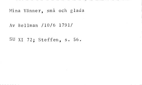 Mina Vänner, små och glada Av Bellman /10/6 1791 //// /SU XI 72; Steffen, s. 56.