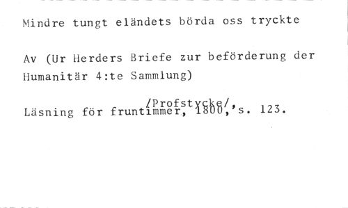 Mindre tungt eländets börda oss tryckte //// Av (Ur Herders Briefe zur beförderung der Humanitär 4:te Sammlung) //// /Profstyke //// /Läsning för fruntimmer iBuu's 123.