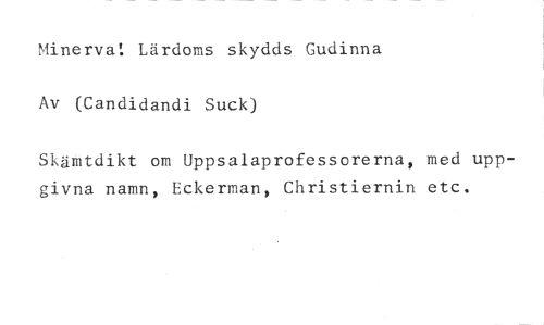Minerva! Lärdoms skydds Gudinna Av (Candidandi Suck) //// Skämtdikt om Uppsalaprofessorerna, med uppgivna namn, Eckerman, Christiernin etc.