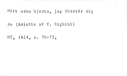 Mitt arma hjerta, jag förstår dig //// Av (Ariette af V. Righini) //// MT, 1824, s. 70-72,