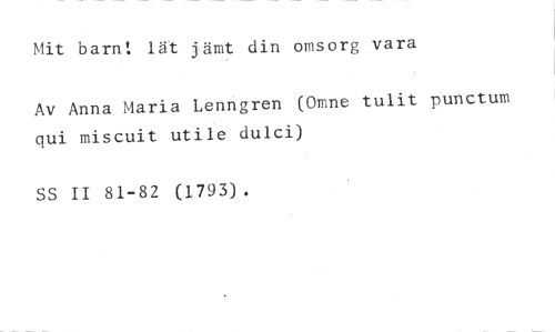 Mit barn: lät jämt din omsorg vara //// Av Anna Maria Lenngren (Omne tulit punctum qui miscuit utile dulci) //// SS II 81-82 (1793).