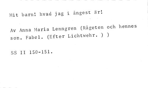 Mit barn! hvad jag i ångest är! //// Av Anna Maria Lenngren (Rågeten och hennes son. Fabel. (Efter Lichtwehr. ) ) //// SS II 150-151.