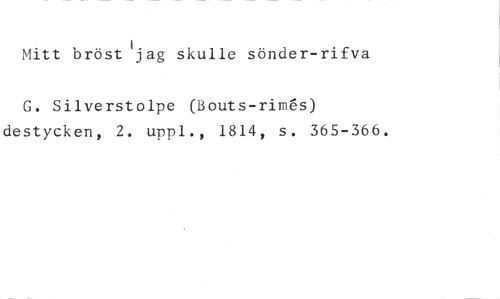 Mitt bröst jag skulle sönder-rifva //// G. Silverstolpe (Bouts-rims) destycken, 2. uppl., 1814, s. 365-366.