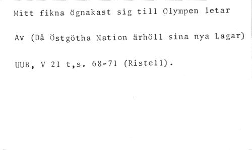 Mitt fikna ögnakast sig till Olympen letar //// Av (Då Östgötha Nation ärhöll sina nya Lagar) //// UUB, V 21 t,s. 68-71 (Ristell).