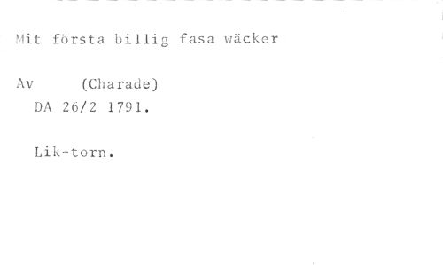 Mit första billig fasa väcker //// Av (Charade) //// DA 26/2 1791. //// Lik-torn.