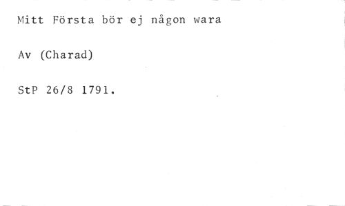 Mitt Första bör ej någon wara Av (Charad) //// StP 26/8 1791.