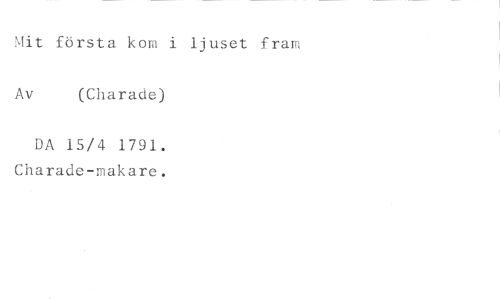 Mit första kom i ljuset fram //// Av (Charade) //// DA 15/4 1791. Charade-makare.