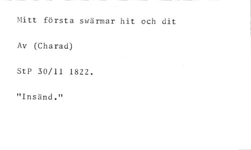Mitt första swärmar hit och dit Av (Charad) //// StP 30/11 1822. //// "Insänd."