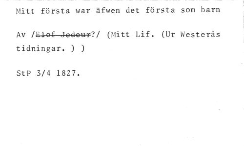 Mitt första war äfwen det första som barn //// Av /Elof Jodour?/ (Mitt Lif. (Ur Westerås tidningar. ) ) //// StP 3/4 1827.