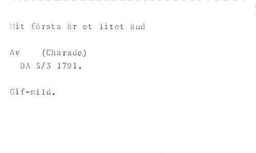 Mit första är et litet Bud //// Av ' (Charade) //// DA 5/3 1791. //// Gif-mild.