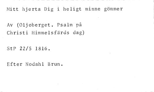 Mitt hjerta Dig i heligt minne gömmer //// Av (01joherget. Psalm på Christi Himmelsfärds dag) //// StP 22/5 1816. //// Efter Nodahi Brun.