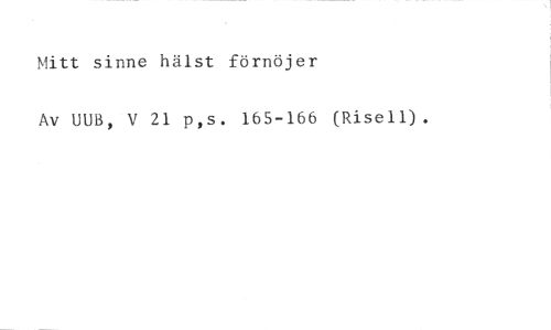 Mitt sinne hälst förnöjer //// Av UUB, V 21 p,s. 165-166 (Risell).